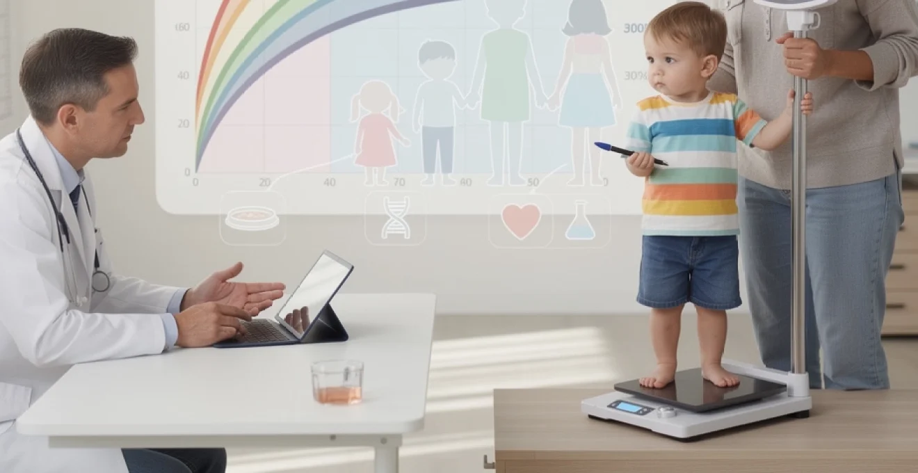 Concrètement, si les deux parents présentent un gabarit plutôt petit et mince, il est très probable que leur enfant se situe dans les bas percentiles de taille et de poids, sans que cela signale une pathologie. À l’inverse, lorsque les parents ont une stature élevée ou une corpulence naturellement plus importante, l’enfant peut légitimement occuper les couloirs supérieurs des courbes, dès la petite enfance. Le calcul de la « taille cible parentale » ou l’observation des gabarits familiaux aide le pédiatre à interpréter ces données.